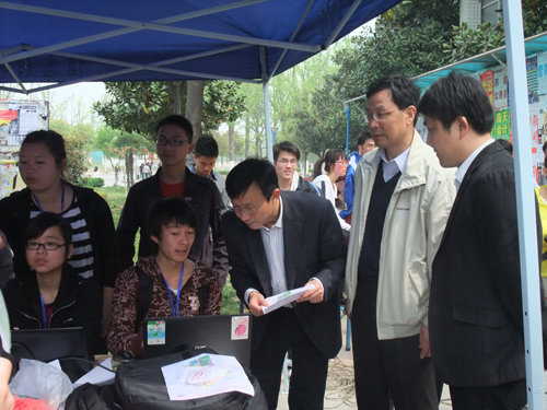 比赛期间,校党委常委、副校长朱永平教授、校宣传部部长许公全老师及学生处副处长何海洋老师也来到了比赛现场,朱副校长详细了解了有关定向越野活动的比赛规则,亲切的慰问了现场工作人员和运动员,并对同学们通过这样的形式向校庆70周年献礼表示了肯定。参赛选手赛后在宣传板上给母校写下自己的祝福语,表达了对母校的热爱和深切的祝福。