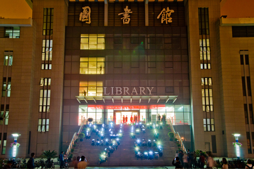 当晚6:30,所有参加活动的同学穿着整齐的校服在图书馆门口集中。经过了前期刻苦的排练,在学生会成员的带领下,大家很快摆好队形。随着指挥人员的号令,同学们很快在图书馆前的台阶上排出了南邮的缩写“NUPT”以及象征着母校七十周年的“70”的图形,并在工作人员的指挥下,打着节拍挥动着手中的电筒,整个图书馆前如星光汇聚,璀璨夺目,美不胜收。
