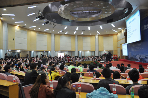 张乃通院士的报告主题是“卫星移动通信与卫星宽带通信的发展及思考”。张院士从卫星通信的类型、特点入手,向我校师生现场普及了卫星通信、卫星移动通信系统、卫星宽带通信系统的基础知识。张院士认为,今后卫星移动通信应定位为陆地移动通信网的延伸与补充,发展下一代移动通信卫星要以提高数据速率,扩展覆盖为目标。同时,他认为陆基和卫星相结合的星地网络融合是成功的关键,陆基宽带网不能独揽天下,宽带卫星也不可能独霸一方,必须发挥各自所长。