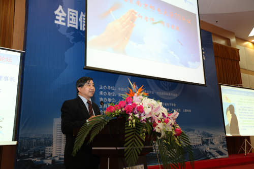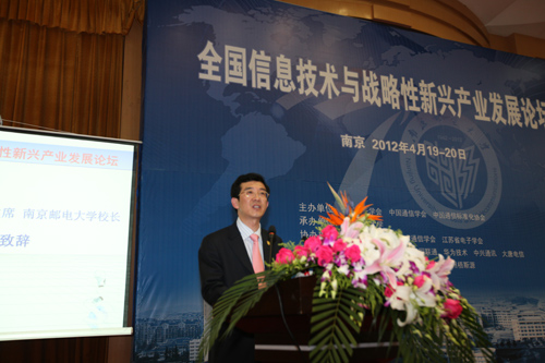 杨震校长代表学校全体师生对论坛的举办表示热烈的祝贺,向出席论坛的领导、来宾表示热烈的欢迎和衷心的感谢。他在简要介绍了我校的发展现状后指出,发展战略性新兴产业已经成为世界主要国家抢占新一轮经济和科技发展制高点的重大战略,我们要加强高层次人才培养,强化关键技术研究,加快大学科技园建设,促进科技成果转化,为推进信息化与工业化深度融合,全面提升我国经济社会信息化水平做出新的贡献。