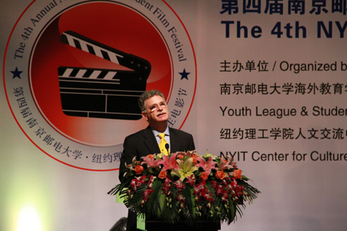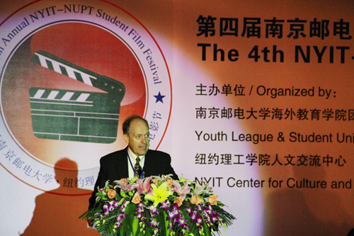 值南京邮电大学七十周年校庆之际,第四届南京邮电大学•纽约理工学院大学生电影节于4月21日在大学生活动中心青春剧场成功举办,为精彩的校庆系列活动锦上添花。南京邮电大学校长杨震教授,南京邮电大学副校长黄维教授,纽约理工学院校长Edward Guiliano教授,美国驻上海领事馆总领事 Robert D.Griffiths等领导与嘉宾受邀参加本次电影节。
