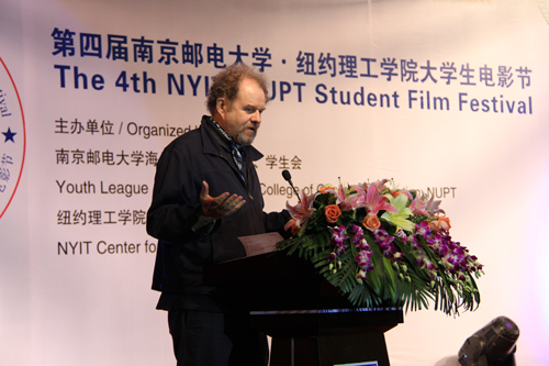 在开幕式上,纽约理工学院Edward Guiliano校长以《超越想象:美国和中国的电影故事》为题上台讲话。他追溯了中美电影的历史,回顾了纽约理工学院在电影工业发展中的作用,指出在电影全球化、科技高速发展的时代,电影艺术的表现形式越来越多元化。海外教育学院兼职教授陈应岐导演、美国导演Mike Figgis、美国驻上海领事馆总领事 Robert D.Griffiths先生也为到场师生发表了精彩的讲话。