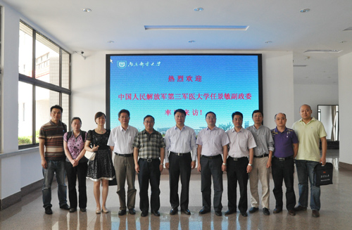 5月18日,中国人民解放军第三军医大学任景敏副政委率领训练部、信息网络管理中心负责人一行6人来我校调研。朱洪波副校长热情接待了任景敏副政委,并与其进行了亲切座谈。