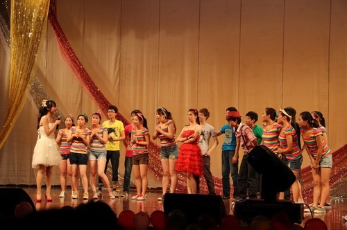 本剧是根据美国著名的同名音乐电影改编的音乐舞台剧。音乐剧又称为歌舞剧,是音乐、歌曲、舞蹈和对白结合的一种戏剧表演,熔戏剧、音乐、歌舞等于一炉,富于幽默情趣和喜剧色彩。由于音乐通俗易懂、表现形式新颖而受大众的欢迎。今年五月,由校文化艺术中心,校团委组织以传媒与艺术学院为单位成立了DreamHigh音乐剧社,使得广大师生能够近距离欣赏到这一精彩的舞台艺术。在主持人介绍了各位出席领导之后,本剧正式拉开了帷幕,同学们用美妙的舞姿和甜美的歌声迎来了在场观众的阵阵掌声。