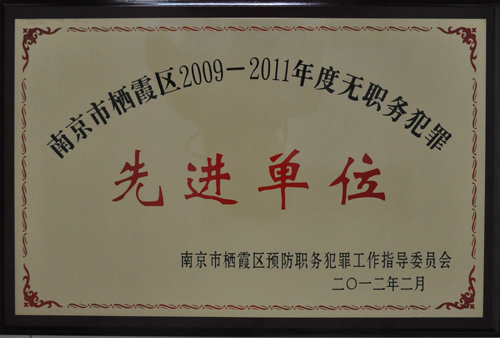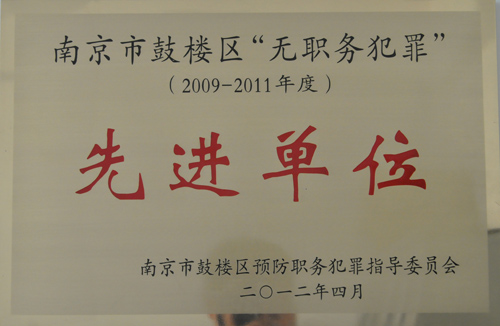 近日,我校被鼓楼区预防职务犯罪工作指导委员会和栖霞区预防职务犯罪工作指导委员会评为“2009-2011年度无职务犯罪先进单位”。
