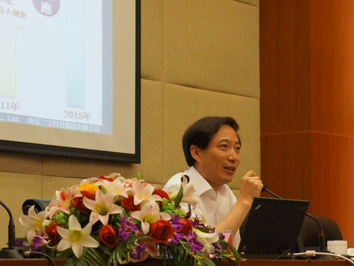 6月13日下午,“大学生创赢南京•企业家导师高校行”南京邮电大学专场报告会在我校行政楼一楼报告厅隆重举行。南京市委统战部李永胜副巡视员,南京市工商联联络处陈荣处长,南京市委统战部知工处刘必伟副处长,栖霞区委统战部副部长、区工商联党组副书记韩跟东先生,南京邮电大学党委常委、副校长朱永平教授等出席了报告会。南京三宝科技集团有限公司董事长、总裁沙敏先生为学生作了题为“我创业我快乐”的精彩报告。