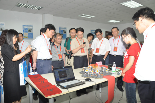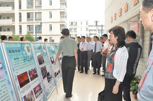 汇报会结束后,考察组在杨震校长和朱永平、颜晓红两位副校长的陪同下,实地参观了我校大学生党员素质工程成果展、大学生党员科技创新成果展、大学生党员科技创新实物展、大学生素质教育示范基地——国防生楼。