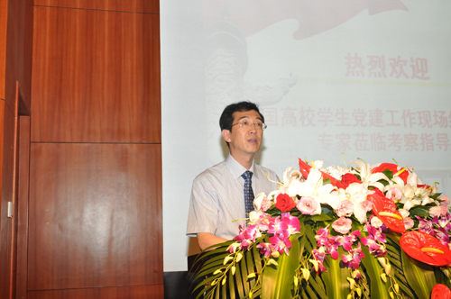 朱永平副校长作了题为“以提升质量为根本,以发挥作用为抓手,全面提升大学生党员素质”的专题报告,汇报了我校学生党建工作的四点主要经验和做法:一是搭建平台,选树典型,切实发挥大学生党员科技创新的榜样带动作用;二是亮出党员身份,彰显时代风采,大学生党员结对帮扶“三困生”显成效;三是加强品牌建设,提高培养质量,切实发挥国防生党员对大学生社会主义核心价值观教育的示范带动、渗透引领作用;四是探索新渠道,创新工作模式,推进新时期大学生党员素质工程全覆盖。