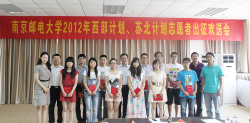 在欢送会上,朱永平副校长对商蕊等11名志愿者积极响应国家“鼓励团员青年到祖国最需要的地方去,为促进区域协调发展作贡献”的号召表示高度赞扬和诚挚的祝福。朱副校长结合自己的经历对志愿者们提出了做好“四种身份”的殷切希望:作为年轻人,要志存高远、脚踏实地缩短理想与现实的距离;作为大学毕业生,要服务基层、增长才干,不虚度年华为今后工作打下基础;作为志愿者,要勤奋工作、保重身体,在精神和体魄上都有收获迎重任;作为南京邮电大学毕业生,要永远记住自己“南邮人”的身份,和老师保持联络,努力把自己的学业专长应用于实践,在西部地区、苏北地区施展才华、建功立业,为母校添光增彩。