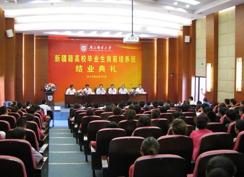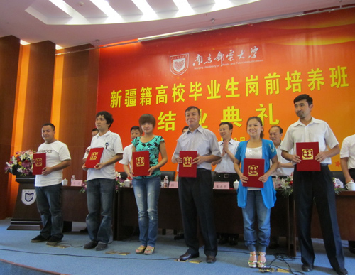 6月20日上午,南京邮电大学新疆籍高校毕业生岗前培养班(社区管理班)结业典礼在仙林校区行政楼报告厅隆重举行。农工民主党中央副主席、南京邮电大学校长杨震教授,校党委常委、副校长朱永平教授,校党委常委、副校长颜晓红教授,新疆伊犁州普通高校毕业生赴江苏培养工作总领队赵欣然、副总领队张义奎,南京邮电大学领队牛浩在主席台就座。结业典礼由校党委常委、副校长颜晓红教授主持。