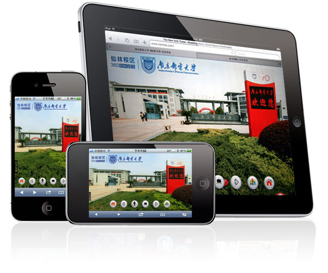 我校360度“数字化”的三维实景漫游展示平台新版从即日起正式上线运行,同时上线的还有iphone版和ipad版,并支持部分android手机,实现了跨平台覆盖。在iphone版和ipad版中系统增加了运动交互功能,用户通过转动身体或触摸屏幕实现观察视角的控制,这是完全不同以往的用户体验。