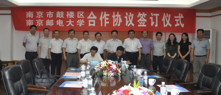 杨学鹏区长和杨震校长分别代表鼓楼区和南京邮电大学在合作协议上签字。