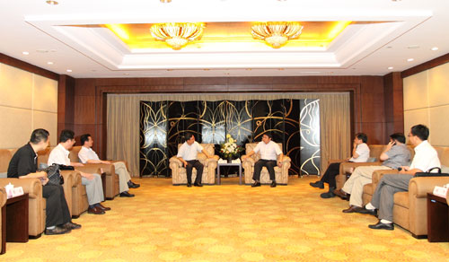 随后,刘书记、杨校长一行与中共无锡市委常委、无锡市新区党工委许刚书记等无锡新区领导就加强南邮与无锡新区合作以及加快推进方圆环球公司的战略发展等问题进行了亲切会谈。刘陈书记首先代表学校党委和行政感谢无锡市及无锡新区领导多年来对我校工作的大力支持,表达了我校支持无锡新区建设的一贯立场和决心,希望南邮与无锡的政产学研合作能够早日取得标志性成果。刘陈书记简要介绍了我校方圆环球公司目前的战略发展机遇,希望无锡新区领导能在企业发展上继续给予大力扶持和帮助。