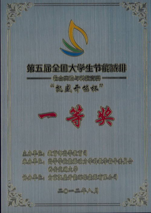 2012年第五届全国大学生节能减排社会实践与科技竞赛决赛于8月7日~10日在西安交通大学举行,我校获得全国一等奖一项,三等奖三项,这是我校2010年参赛后获得该项比赛获奖项最多的一次,也是继2011年首次获得全国一等奖后再次获得该项赛事的一等奖,为我校赢得了荣誉。
