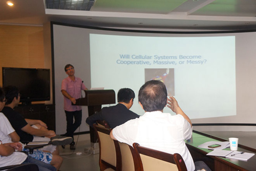 聘任仪式后,黄继杰教授和来自西班牙UPF(Universitat Pompeu Fabra)大学的Lozano教授分别为在座的50余名师生做了题为“Towards a Self-regulating Society of Cognitive Radios”和“Cooperative, Massive, or Messy?”的精彩学术讲座。
