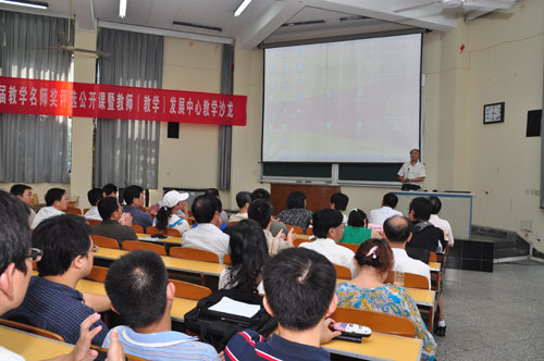 第四届“教学名师奖”的评选活动于2012年6月15日正式启动,经过个人申报、学院推荐、有关部门审核和学校评审专家组初评,有四位教学名师候选人进入公开课授课角逐。他们在20分钟的授课过程中,通过知识导入、问题设置、详细讲解、图文案例、师生互动、总结概括、引导学生深入思考等环节向评委和观摩者展示了课堂的缩影。各学院(部)教学院长(主任)、实验院长、各教学中心(系)主任及青年教师等100多人参加了教学观摩。