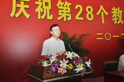 刘书记在讲话中指出,南邮今天的成就源于教师的辛勤付出,学校的每一点进步,都凝聚着全体南邮人的辛勤汗水,没有广大教师的奋力拼搏、忘我工作,就没有南邮的今天。他强调,尊师重教、尊重人才是实现南邮美好未来的唯一途径。百年大计,教育为本;教育大计,教师为本。必须紧紧依靠广大教师,最大限度地激发全体教师的积极性、主动性、创造性,在全校大兴尊师重教之风,弘扬尊师重教精神,让尊师重教成为推动学校事业科学发展的精神源泉,才能让南邮的各项事业稳步发展,建设目标成为现实。为此,他要求学校创造良好的氛围和条件,使教师充满幸福感、自豪感;赋予学术组织相应的学术权力,使教师充满责任感、使命感;强化民主管理、民主监督、民主决策,使教师充满认同感、归宿感。他希望,南邮广大教师要奋发有为、勇于担当。作为学校发展的源头活水,学校办学的“第一资源”,全体教师应常思责任之重、常谋育人之方、常怀创新之举,振奋精神,勇于开拓,同心同德,创先争优,为学校事业发展再上新台阶再创佳绩、再立新功!