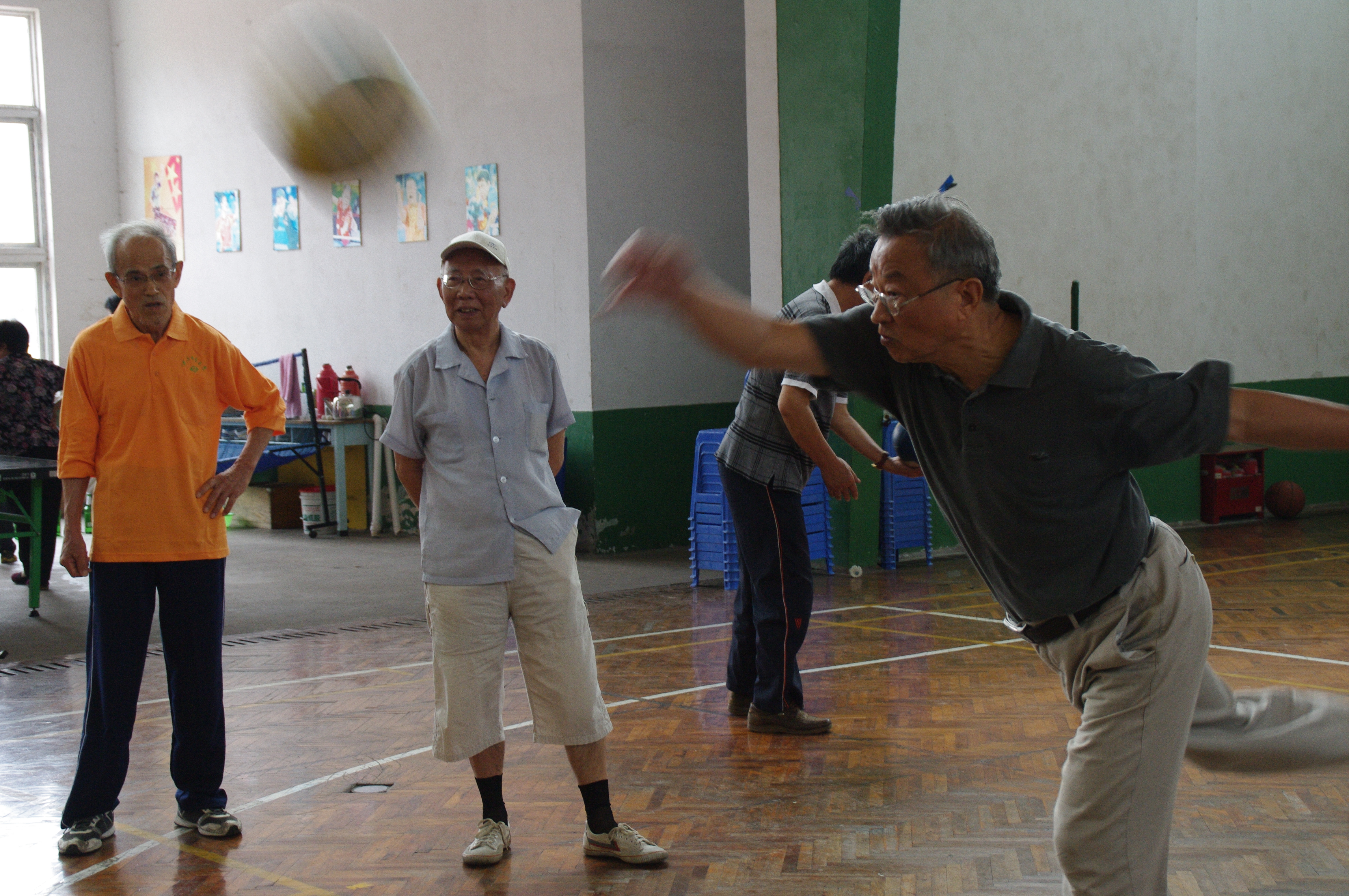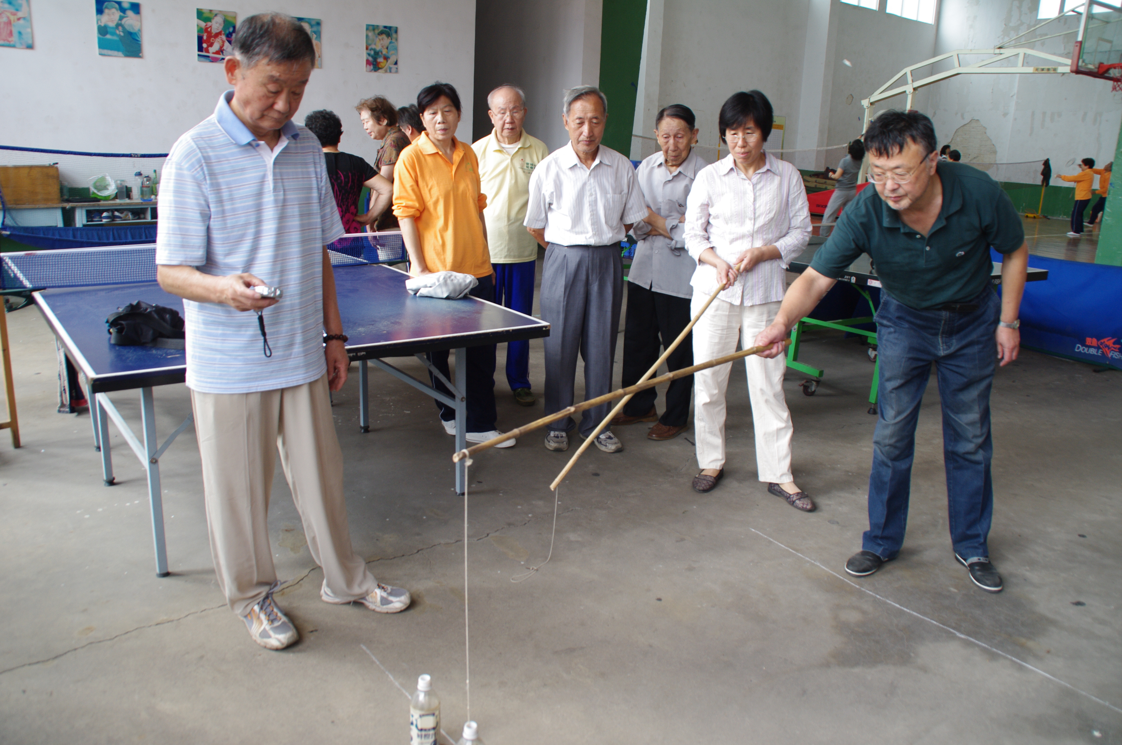 开幕式结束前,大家欣赏了由部分老同志组队表演的“第九套广播体操”和“健身球操”,并报以阵阵掌声。约9时许,老运动员们分赴各比赛场地,开始了愉快的角逐。运动会安排的八个健身与娱乐兼顾、特别适合老年人身心健康的比赛项目分别是:篮球定点投篮、排球发准、羽毛球双人对击、掷飞镖、套圈、钓鱼、沙袋掷准、地滚球等。比赛中,老运动员们精神抖擞、动作像模像样,大家抱着“享受过程、输赢两笑”的心态,尽情追寻着那份发自内心的欢乐。比赛结束后,按录取名次分别对获得一、二、三等奖的老运动员给予了奖励。