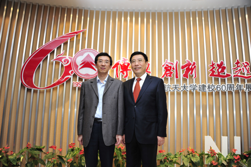 10月20日,我校杨震校长应邀参加南京航空航天大学60周年校庆。期间,应邀参加南航校庆的工业和信息化部苗圩部长与杨震校长、王宗荣副校长交谈并合影留念。