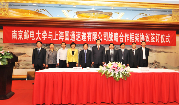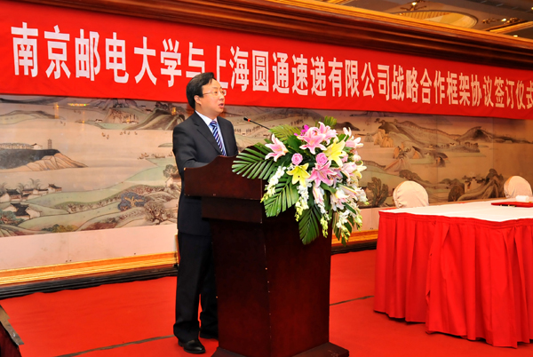 10月26日上午,我校与上海圆通速递有限公司战略合作框架协议签约仪式在南京隆重举行。国家邮政局副局长苏和、国家邮政局办公室主任韩瑞林、江苏省邮政管理局局长张水芳、上海圆通速递有限公司董事长兼总裁喻渭蛟等领导出席了签约仪式。我校党委书记刘陈教授出席签约仪式并致辞。