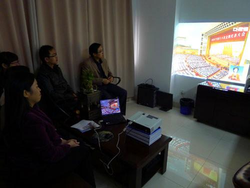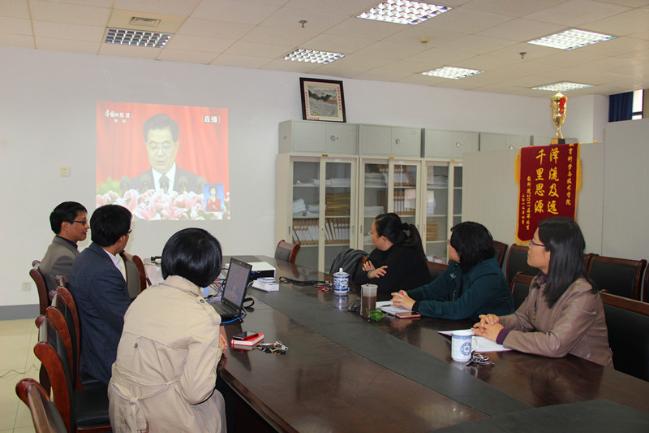 人文与社会科学学院党委组织全体师生党员在学院大会议室观看党的十八大开幕式视频直播。大家一致认为报告对成绩的总结实事求是,对未来的规划科学可行,特别是将科学发展观首次作为党的指导思想写进报告具有重大的理论意义和深远的历史意义。大家纷纷表示要认真学习贯彻报告精神,深入领会报告内涵,脚踏实地工作和学习,为实现党的奋斗目标而不懈努力。