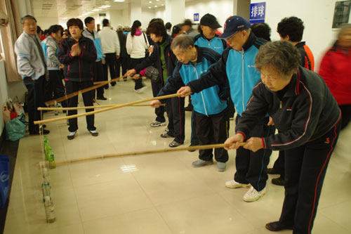 我校组队的90多名离退休教职工运动员参加了全部项目的比赛。我校老同志们把比赛当作展示自己常年锻炼成果的平台,发挥了较好的水平,在25个参赛队中名列第9,比去年的排名上升了4位,第一次进入前十。运动会集竞技性、趣味性于一体,共设了适合老年人身心健康的篮球定点投篮、排球发准、羽毛球对击、地滚球、套圈、掷沙袋、钓鱼、飞镖等8个比赛项目。老运动员们本着“重在参与、重在交流、重在安全、重在健康、重在快乐”的宗旨,精神抖擞、认真专注地投入比赛,各赛场上不时传出喝彩声、欢笑声。老同志们热情地相互切磋技艺、交流健身体会和经验,充满友好和谐的氛围。