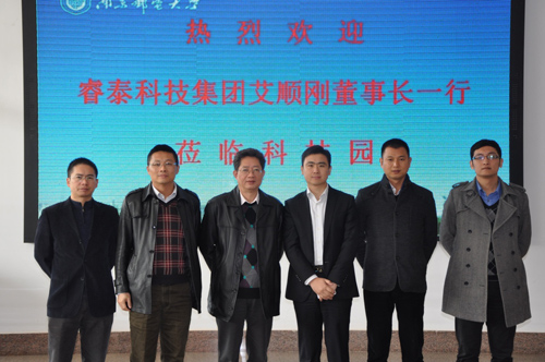 11月24日上午,睿泰科技集团艾顺刚董事长一行莅临我校物联网科技园洽谈交流,科技产业发展中心张登银主任主持了座谈会。