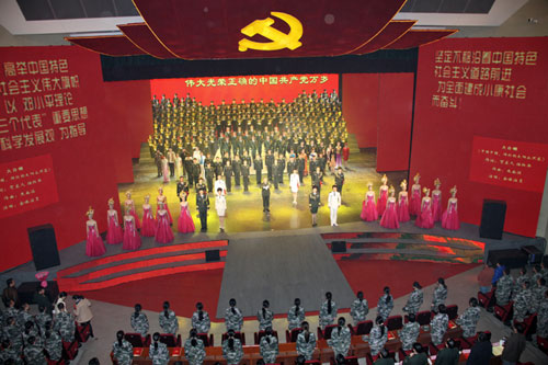 为学习宣传贯彻党的十八大精神,12月9日晚,南京军区政治部在军区礼堂举办了观看《高举旗帜向前进》主题演唱会。副校长张志华、校国防生培养工作领导小组成员、我校国防生以及南京理工大学国防生等近千人观看了演出。
