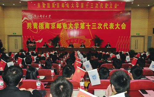 12月19日下午,共青团南京邮电大学第十三次代表大会在仙林校区图书馆四楼报告厅召开。来自全校各基层单位的204名团员代表参加了大会。团省委少先队总辅导员、学校部分管领导姜东,团省委组织部部长、学校部部长俞锋,我校党委书记刘陈,校党委常委、副校长王宗荣、蒋国平、张志华出席了开幕式并在主席台就座。南京大学等25所兄弟高校的团委书记到会祝贺。我校各职能部门、学院的负责人应邀出席了开幕式。