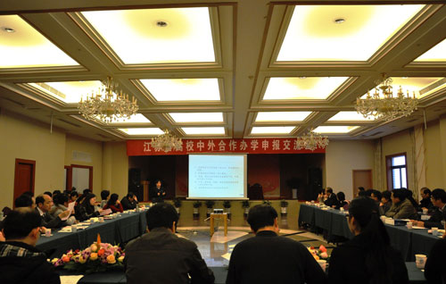 12月21日,由江苏省教育厅国际合作与交流处主办,南京邮电大学海外教育学院、国际合作交流处承办的“江苏省高校中外合作办学申报交流会”在南京邮电大学凤凰环球酒店举行。江苏省教育厅国际合作与交流处领导、教育部中外合作办学评审专家、南京邮电大学国际合作交流处、海外教育学院负责人以及来自38所高校的近80名高校领导、代表们参加了交流会。