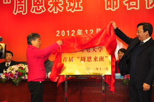 周恩来邓颖超秘书、全国政协原副秘书长赵炜先生与我校党委书记刘陈教授共同为“周恩来班”揭牌