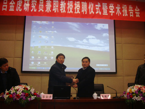 吕金虎研究员为加盟南邮感到高兴。他说,加盟南邮是一个机遇,自己一定抓住这次机遇,把自己最新的研究与南邮师生互动交流,并欢迎南邮的师生到中国科学院数学与系统科学研究院交流。
