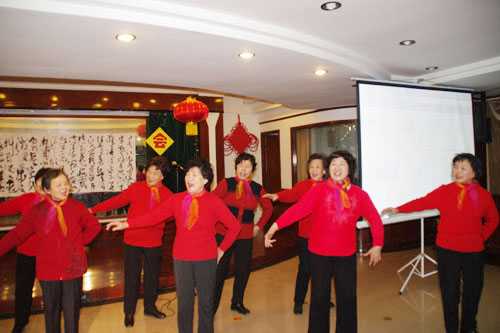 联欢会节目由张俊祥、王传涓两位老同志主持。欢快的开场舞蹈《最炫民族风》拉开了演出的序幕。随后,一个个老同志自编、自演的节目闪亮登场。音乐书法表演《春江花月夜》让在场的观众耳目一新,伴着悠扬的二胡声,欣赏着书法表演,音乐书法融为一体,既展示了书法的魅力,又让观众陶醉在悠扬的二胡演奏中,形成了一道独特而靓丽的风景。老年广场舞的表演,尽情展现了我校老年健身队的健康风貌和活力。男女声对唱《祖国,我的最爱》诠释出老同志对祖国的热爱和对美好生活的追求。越歌、京剧、豫剧等传统剧目的表演,更是受到了大家的喝彩。配乐诗朗诵《感恩》中深情的话语,让大家体会到生命中有太多值得去感激的人,人人都有一颗感恩的心。女声小合唱《蝶恋花》更是展现了我校老年合唱队的水准。