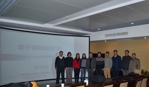 来访期间,郭院士对学校年轻人的科研工作提出建设性意见,为我校在量子信息学科的创新发展指引了方向;同时向学校赠送了《来自量子世界的新技术》教学光盘。