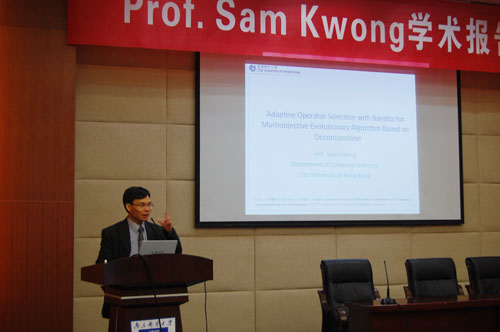 Kwong教授在报告中首先介绍了多目标优化算法的相关基本概念,然后结合在IEEE Transactions on Evolutionary Computation 2012年发表的论文,重点介绍了他所领导的课题组如何使用自适应的方法来提高多目标寻优效果的情况,最后Kwong教授详细介绍了相关最新研究工作和研究方向。报告会后,Kwong教授热情解答了老师和同学们所提出的各种问题。