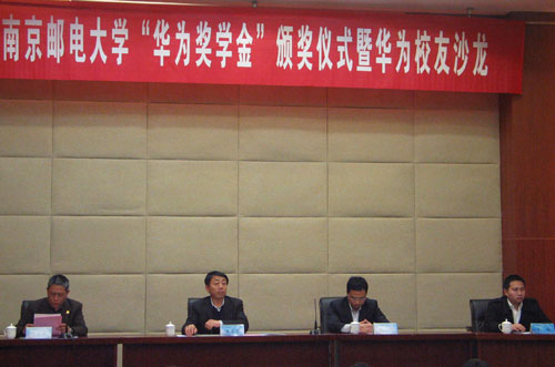 颁奖仪式之后是华为校友沙龙活动。已经任职于华为公司的三位南邮校友向在座的同学介绍了他们的工作学习经历,并回答了同学们的提问,现场气氛热烈。