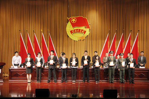 校团委张敏书记宣读了《关于表彰2012-2013学年五四红旗团支部、先进团支部、优秀团员标兵、优秀团员的决定》,授予B090110等27个团支部“五四红旗团支部”荣誉称号,授予B120102等107个团支部“先进团支部”荣誉称号,授予施展等62名同学“优秀团员标兵”荣誉称号,授予缪顾敏等534名同学“优秀团员”荣誉称号。