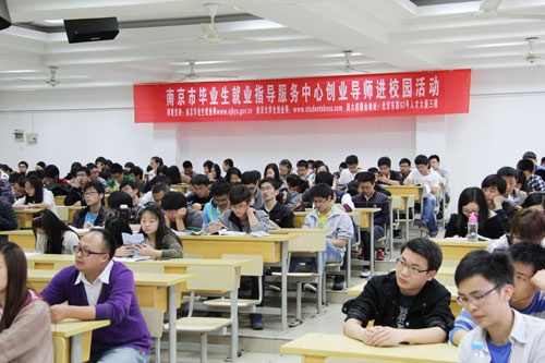 5月9日下午,由南京市人社局毕业生就业指导服务中心举办,南京邮电大学毕业生就业创业指导办公室承办的“创业导师进校园”活动在仙林校区教3-102教室进行。