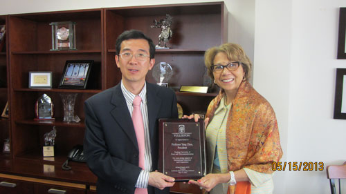 杨震校长访问美国加州州立大学富乐敦分校,与校长Dr.Mildred Garcia合影