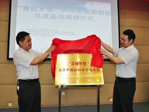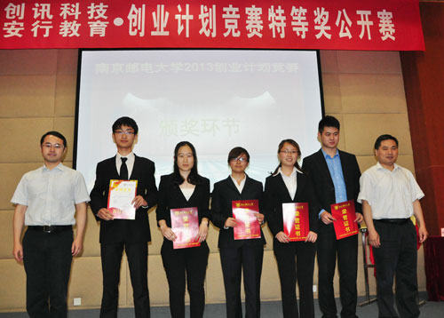 5月22日下午,“创讯科技•安行教育”杯南京邮电大学2013年创业计划竞赛特等奖公开赛在我校仙林校区行政楼报告厅隆重举行。南京团市委书记单晓峰与我校党委常委、副校长蒋国平出席活动,共同为“青创梦想”大学生创新创业共建基地揭牌,并为创业计划竞赛获奖团队颁奖。