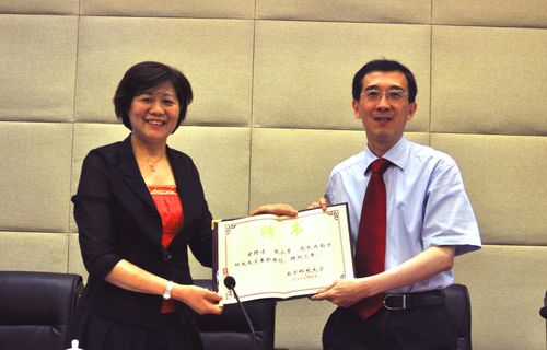 6月13日,江苏省邮政管理局局长张水芳正式受聘为我校兼职教授。受聘仪式在仙林校区行政楼一楼报告厅举行。校长杨震教授为张水芳局长颁发兼职教授聘书和南京邮电大学校徽。受聘仪式由副校长叶美兰教授主持。