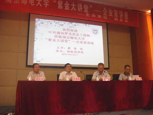 6月21日下午,由教务处主办,物联网学院承办的南京邮电大学“紫金大讲堂”——企业家讲座第六次活动在仙林校区行政楼一楼报告厅举行,特邀我校“江苏产业教授”中兴通讯股份有限公司罗圣美总工程师为同学们做了题为“移动互联网技术创新”的讲座。讲座由教务处副处长唐加山教授主持。