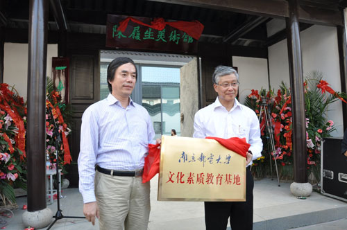 日前,中国国家博物馆副馆长、中国美术家协会理事陈履生美术馆在常州花博会展区雅集园海棠苑举行了开幕式。受颜晓红副校长委托,我校传媒与艺术学院院长、校文化艺术中心主任王平教授一行六人参加了开馆仪式。王平院长向陈履生副馆长颁发了南京邮电大学传媒与艺术学院兼职教授聘书。“南京邮电大学文化素质教育基地”和“南京邮电大学传媒与艺术学院非物质文化遗产研究基地”揭牌仪式同时在陈履生美术馆举行。
