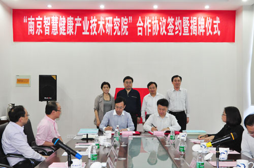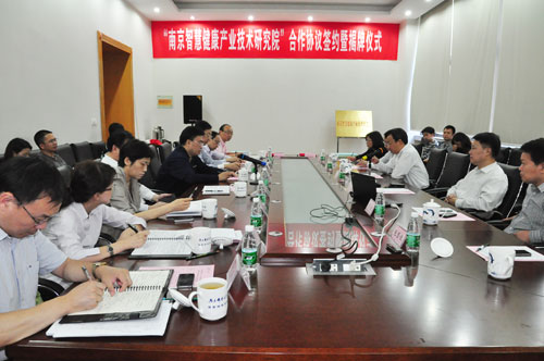 会议听取了朱洪波副校长关于南邮和鼓楼区科技产业协同创新工作的具体汇报,详细了解了双方在物联网大学科技园、物联网协同创新中心和南京智慧健康产业技术研究院等方面合作建设的情况,并现场举行了南京智慧健康产业技术研究院的签约和揭牌仪式。郭明雁常委和朱洪波副校长分别代表双方在合作协议书上签字,杨学鹏书记和刘陈书记共同为南京智慧健康产业技术研究院揭牌,与会领导共同见证了签字和揭牌仪式。