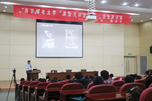 为了丰富我校大学生的课外生活,提高大学生的科学素养和人文素质,由教务处主办、传媒与艺术学院承办的南京邮电大学“紫金大讲堂”――企业家讲座第九次活动于近日在仙林校区图书馆四楼报告厅举行。江苏先锋信息科技有限公司刘建总经理应邀莅临“紫金大讲堂”,给同学们带来了题为“中国电影文化之胶片电影”的精彩讲座。讲座由传媒与艺术学院副院长卢锋主持。