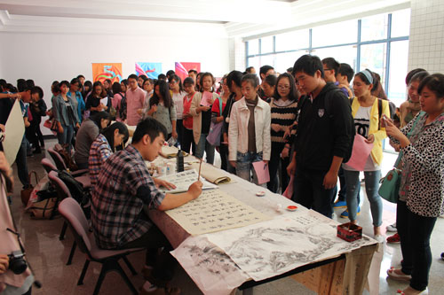 展览并设置了绘画、书法现场创作环节,呈现了形式多样、内容丰富的艺术作品。作品充分弘扬时代的主旋律,为我校师生提供了一个亲近艺术、聆听大师、提高艺术修养、感受艺术魅力的平台。