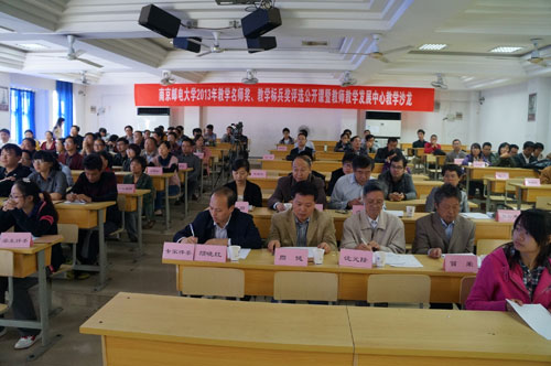 近日,我校2013年教学名师奖、教学标兵奖评选公开课暨教师教学发展中心教学沙龙活动在仙林校区教2-102教室举行。校党委常委、副校长颜晓红教授出席并讲话。活动由教务处处长陈鹤鸣教授主持。