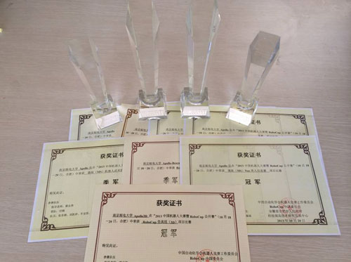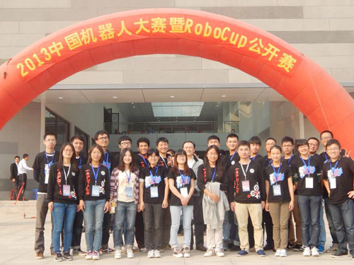 第13届中国机器人大赛暨RoboCup公开赛于2013年10月18日-20日在安徽省合肥市安徽建筑工业大学举行。在校机器人大赛的基础上我校选拨了12支队伍参赛,共获得冠军2项、季军2项、二等奖1项、三等奖3项。其中,Apollo3d队获得RoboCup3D仿真机器人足球项目冠军,实现在中国机器人大赛此项赛事上三连冠(2011-2013年);Apollo_MS队获得微软NAO类人仿真足球项目冠军,这也是我校第一次在该项目上获得冠军;Apollo_Resuce队在决赛最后时刻反超中南大学代表队获得多智能体灾难城市救援仿真项目季军;Apollo_WS队获得机器人武术擂台仿真项目季军等。