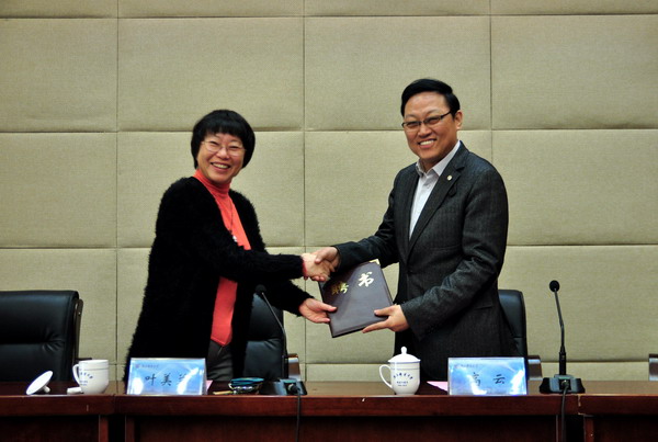 副校长叶美兰教授向高云先生颁发兼职教授聘书和校徽