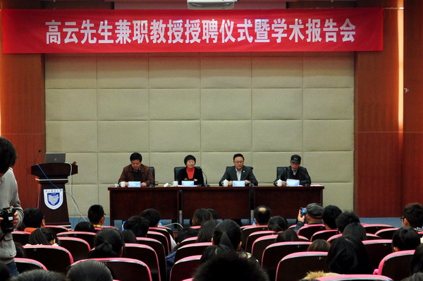 叶美兰副校长在致辞中感谢高云先生加盟南邮,希望他常来南邮指导,帮助南邮培养艺术与传媒兼修的艺术家。高云教授则声情并茂地发表了受聘感言,他认为像南邮这样以理工科为主的高校聘任艺术类兼职教授是中国高等教育的进步;他觉得科学要插上想象的翅膀,优秀的科学成果不仅科学而且美,而艺术充满了想象,追求的正是真善美;他愿意为南邮卓越工程师培育计划贡献艺术的力量,为南邮的美贡献力量。